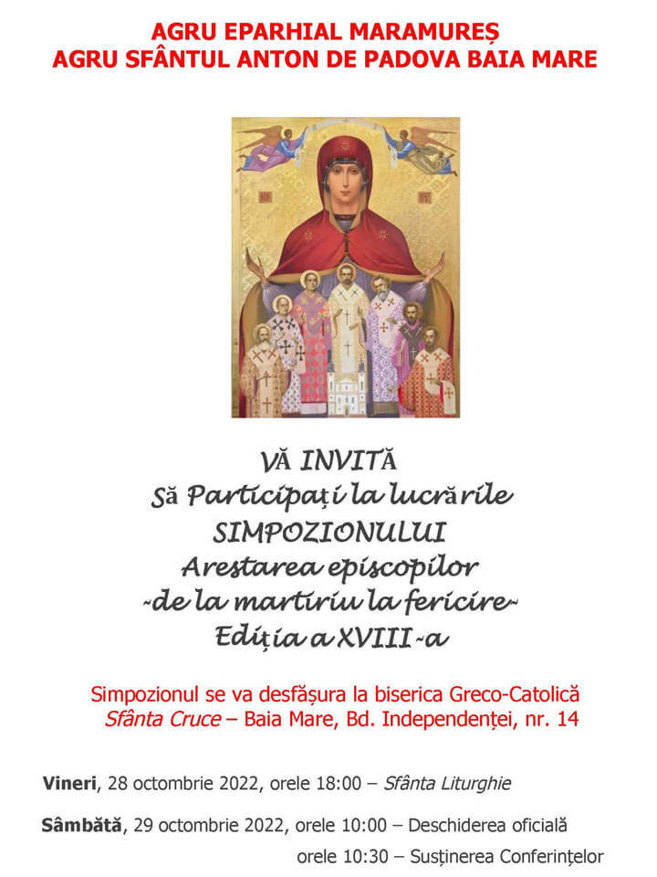 Asociația AGRU Maramureș vă invită să participați la Simpozionul „Arestarea Episcopilor. De la martiriu la fericire”, Ediția a XVIII-a.